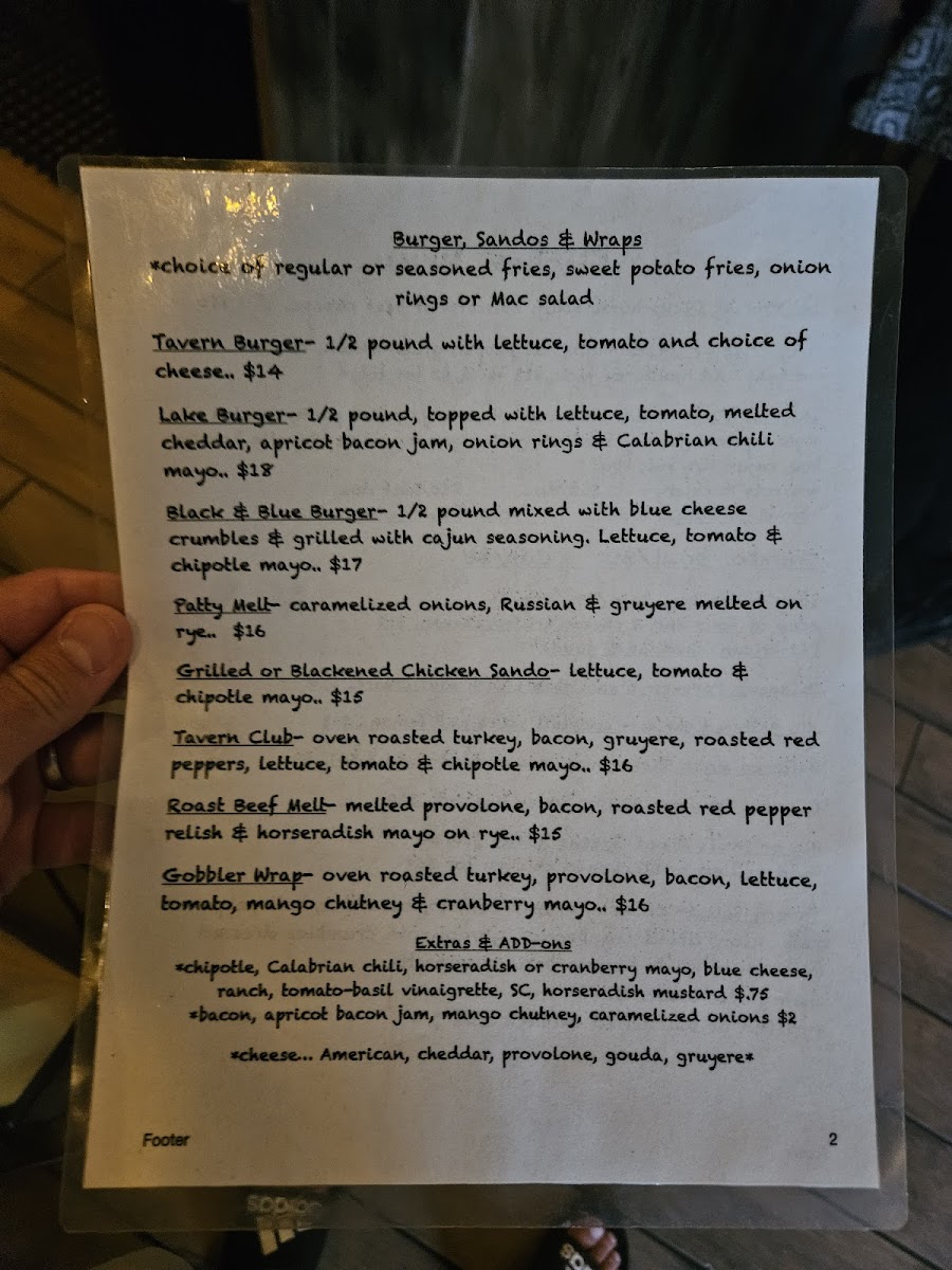 In terms of structure, the menu flows naturally: start with shared plates, move into mains, and any tweaks or substitutions are taken in stride. The space itself adds to the enjoyment-windows toward the lake, TV screens for catching the game, and enough of a lively buzz to feel like you’re out, without sacrificing the comfortable local charm. The food styling mirrors that: approachable but thoughtful. The burger-and-fries foundation is there, but you also see variations that reflect a kitchen willing to play a bit. The reviewers consistently mention the “great vibe with exceptional pub food”. From this vantage it’s clear the menu is designed to serve both regulars and newcomers who want something satisfying, a bit elevated from your ordinary tavern, but still very much rooted in ease and flavor.